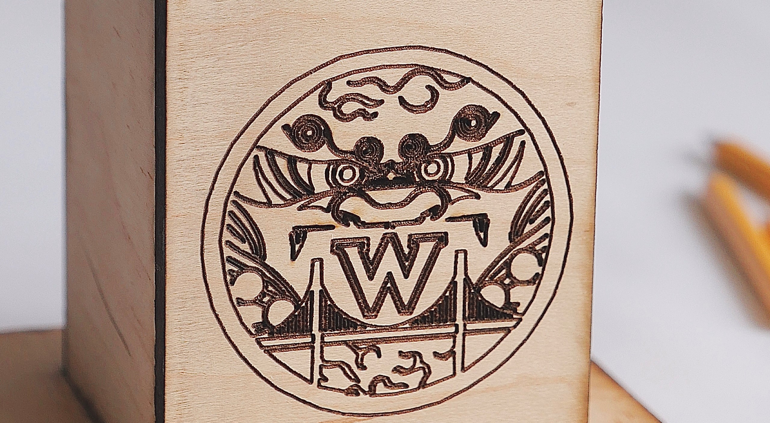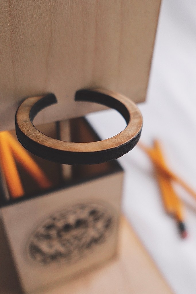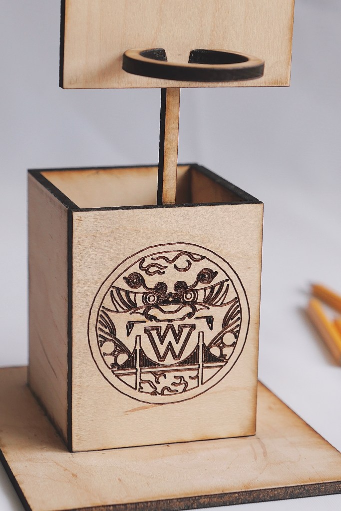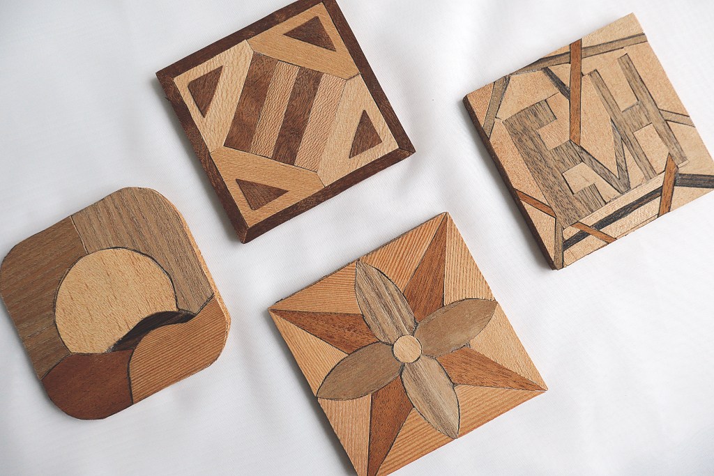 A sports themed pencil holder.A hand-crafted cutting board made out of walnut and cherry oak. A gift for my Mom & Dad.A set of 4×4 coasters made out of various veneers and glued on top of a square of cork.A veneer inlay representing Van Halen’s 5150 album.A flower pot made out of cherry oak and crafted on a lathe. Another gift for my Mom & Dad.A walnut keychain crafted on a lathe.